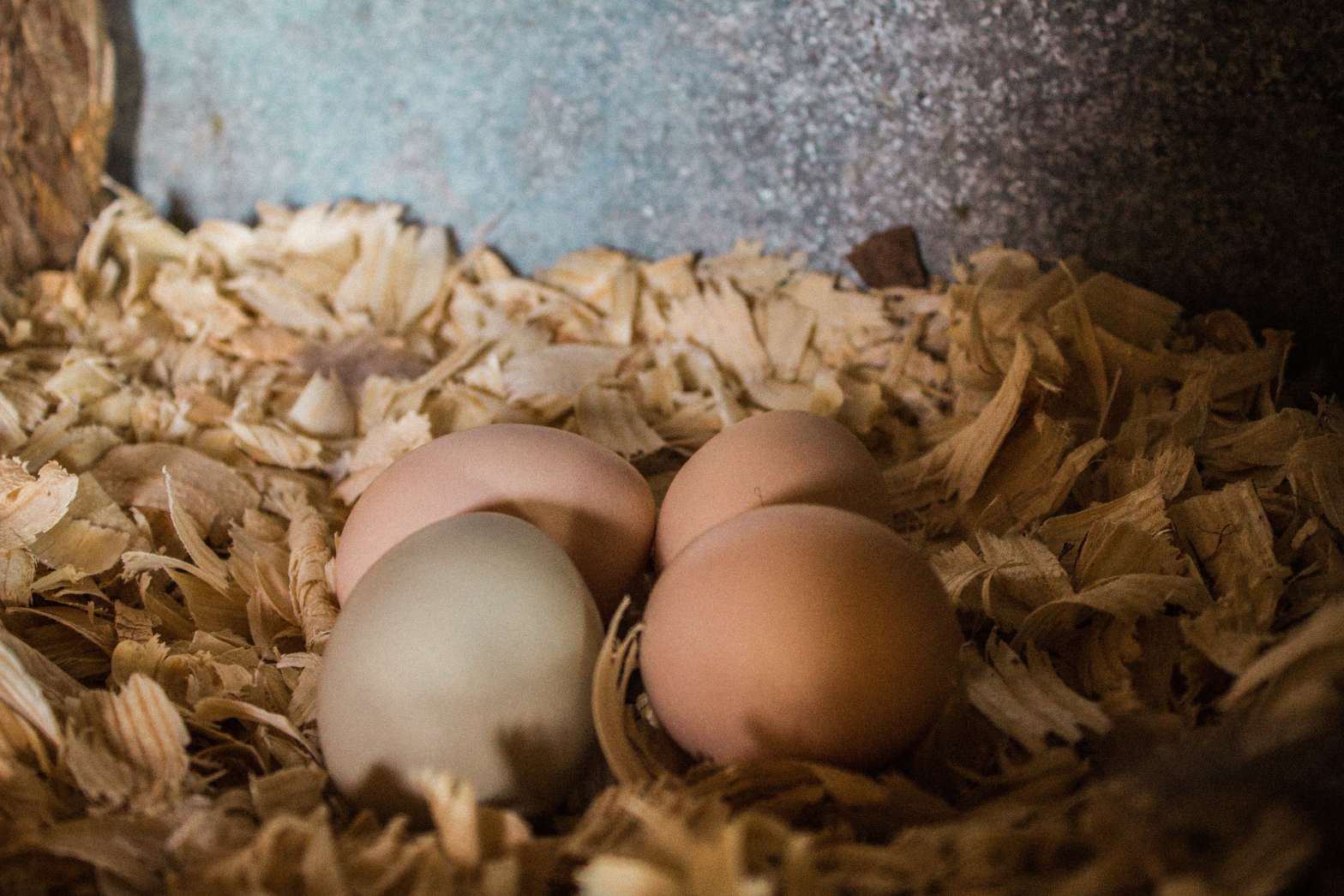 Beautiful brown and green eggs from a local farm where happy chickens and ducks roam free. These are Highland Homestead eggs.